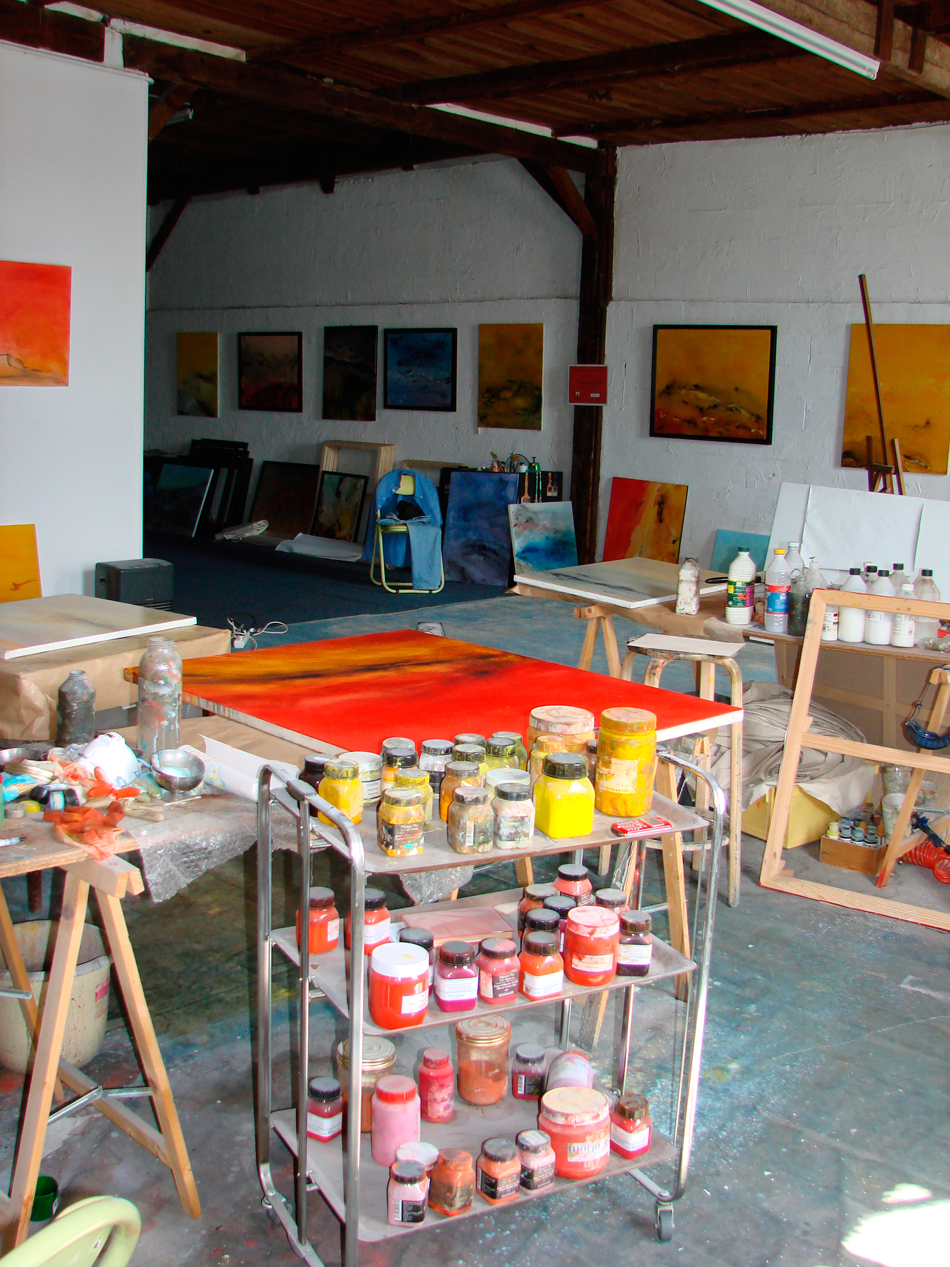 Son atelier-salle d’exposition de 500 m² se situe dans l’ancienne tannerie, pleine de charme de Gélos. Il est possible de le visiter.