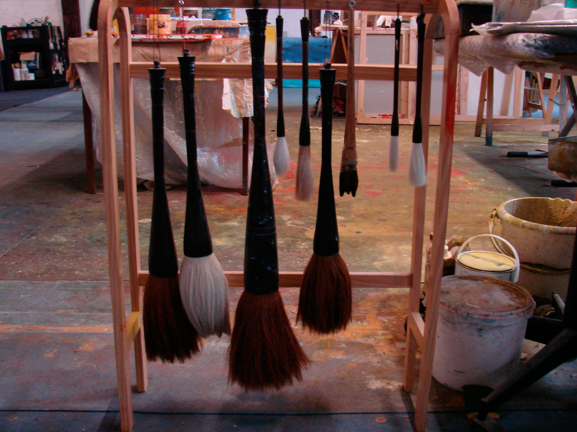 Quand il commence une toile, il choisit une musique qui correspond à son émotion du moment. Alors commence la première phase de la création de la toile : l’improvisation. Ses gestes sont mécaniques et guidés par la musique. Il peint directement sur la toile avec des pigments en poudre.